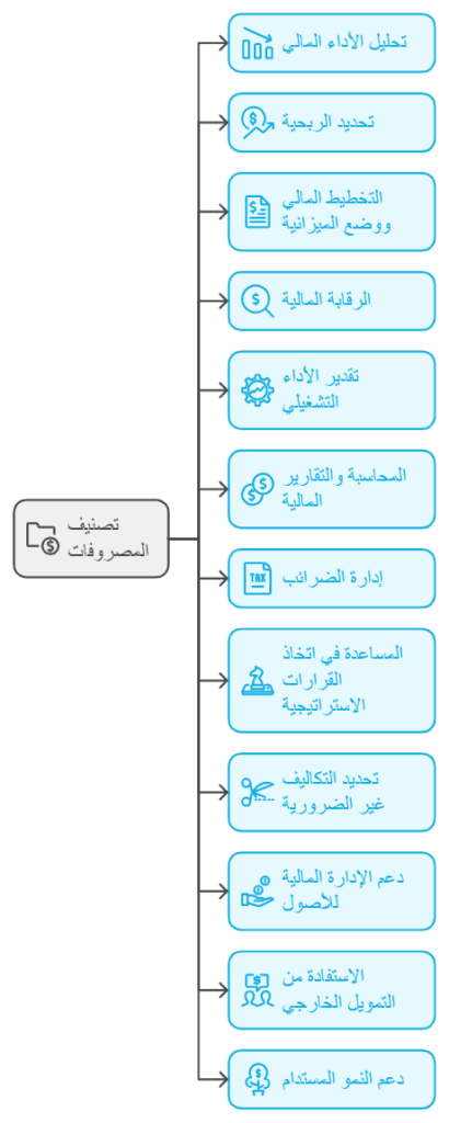 تصنيف المصروفات يساعد في تحليل الأداء المالي للشركة بشكل أكثر دقة. يمكن للإدارة تحديد أين تُنفق الأموال، وقياس كفاءة استخدام الموارد المالية. كما يمكن مقارنة المصروفات مع الإيرادات لتحديد هوامش الربحية على مستوى الأنشطة المختلفة.