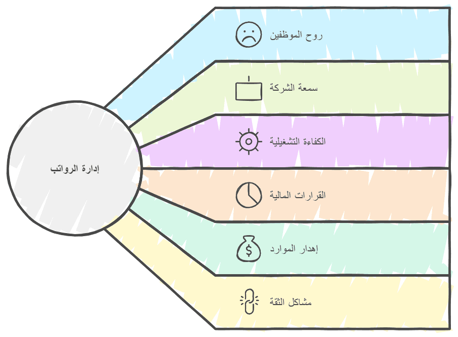 عدم الامتثال للقوانين المتعلقة بالرواتب، مثل عدم دفع الضرائب أو التأمينات بشكل صحيح، قد يعرض الشركة لغرامات قانونية.تأثير سلبي على سمعة الشركة